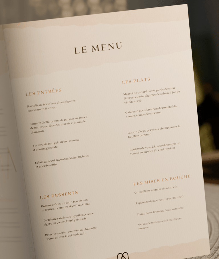 Des entrées délicates aux plats réconfortants, jusqu’aux desserts gourmands, chaque création rend hommage aux producteurs locaux et à la générosité de la nature.